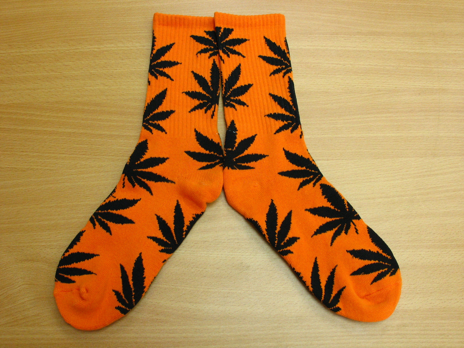 Harajuku Weed Marijuana Crew Socks Orange/Black Color