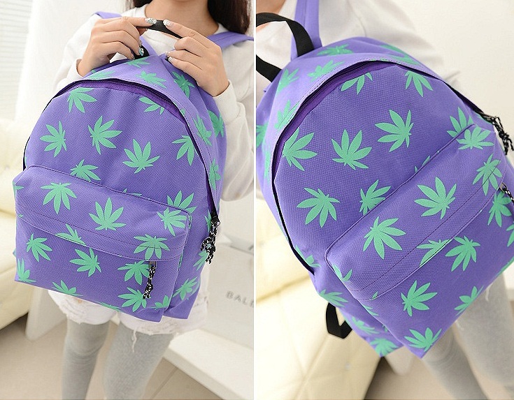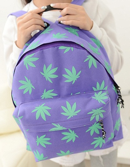 Weed Green Leaves Pattern Backpack, one size only and the size is 35 cm Width x 41 cm Height x 12 cm Depth. Brand new and 4 colors can be chose. Pink/Green color. Unisex style and durable quality.