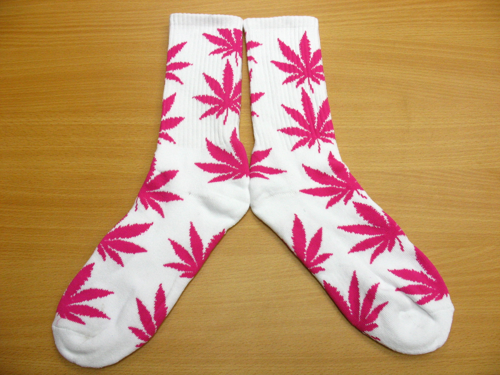 Harajuku Weed Marijuana Crew Socks White/Carmine Rose Color